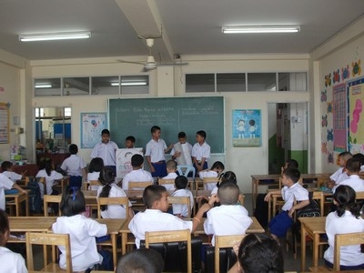 พรรคแต่ละพรรคกำลังหาเสียงกับน้องๆ และเพื่อนๆ ระดับประถมศึกษาแต่ละห้อง