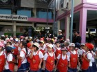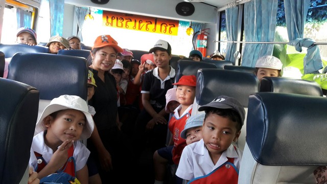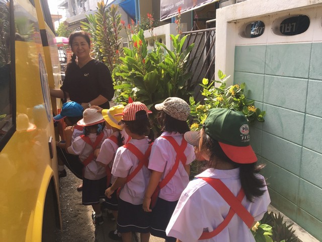 กำลังขึ้นรถบัสโรงเรียน