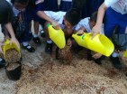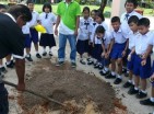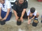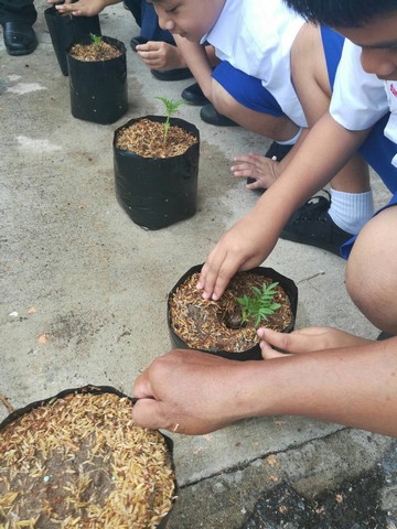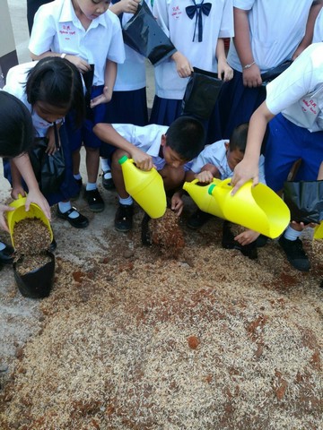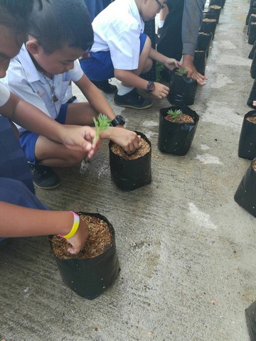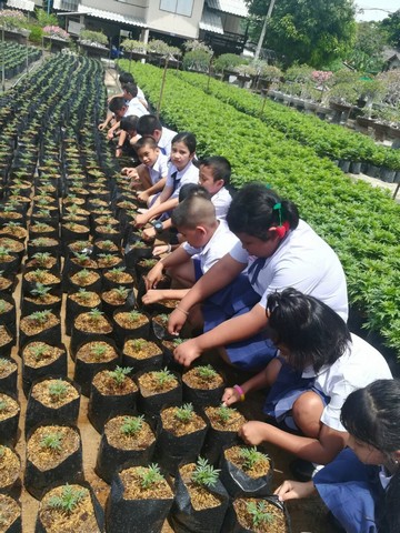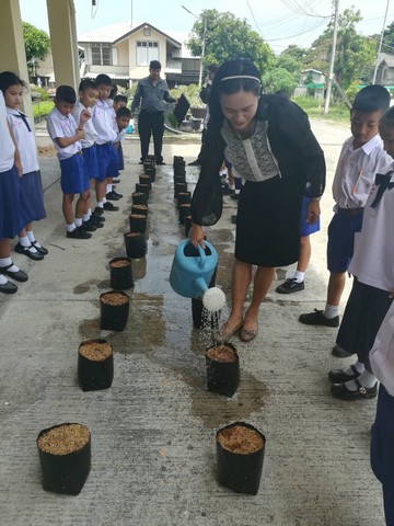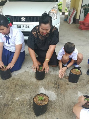ครูและนักเรียน ร่วมกันปลูกต้นไม้เพื่อแผ่นดิน