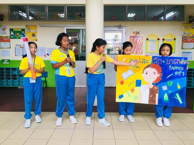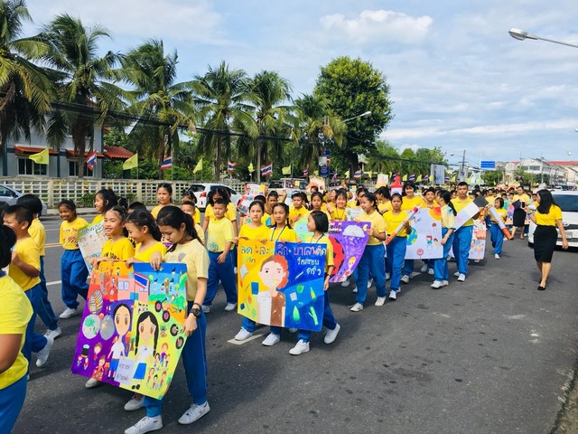 กิจกรรมเดินรณรงค์ต่อต้านยาเสพติด นักเรียนชั้นประถมศึกษาปีที่ 1-6