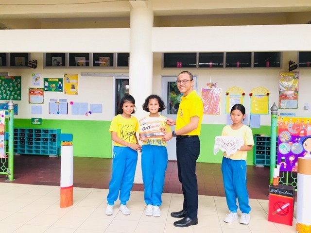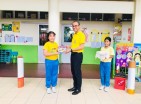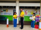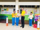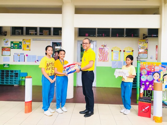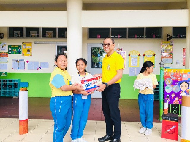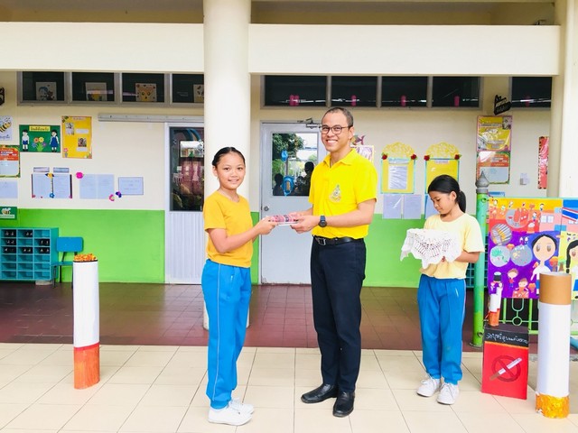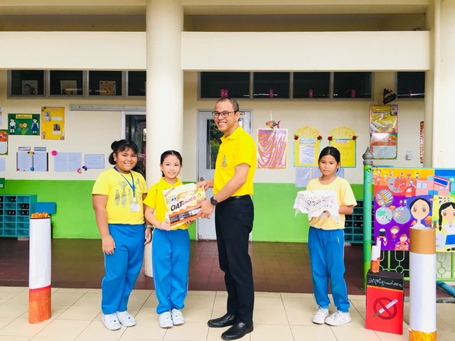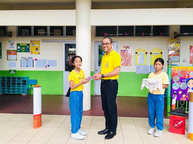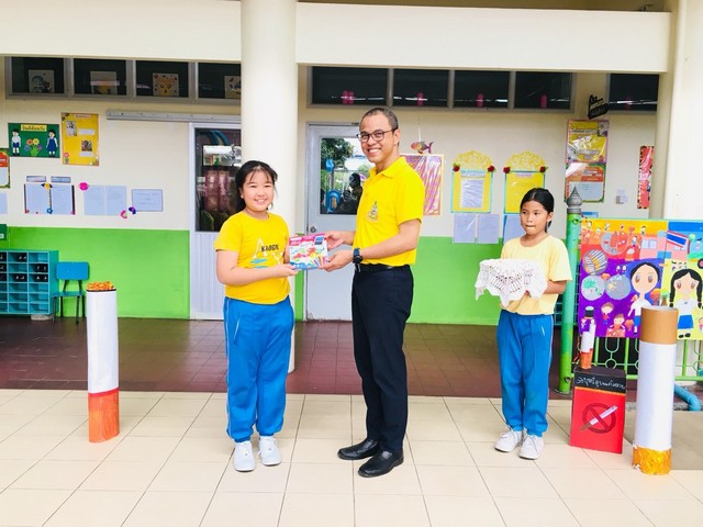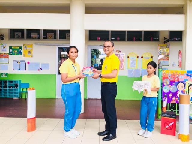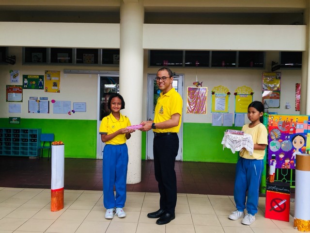 นายธนภัทร วราหะกิจ ผู้อำนวยการสำนักอำนวยการมอบรางวัลให้กับนักเรียนที่มีผลงานชนะการประกวดวาดภาพระบายสี กิจกรรมวันต่อต้านยาเสพติด
