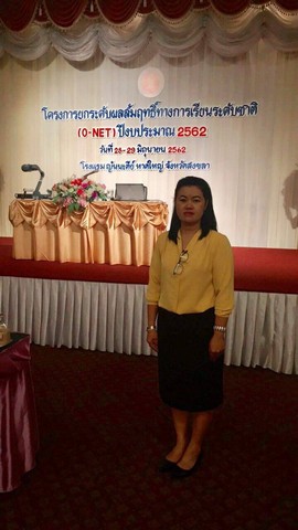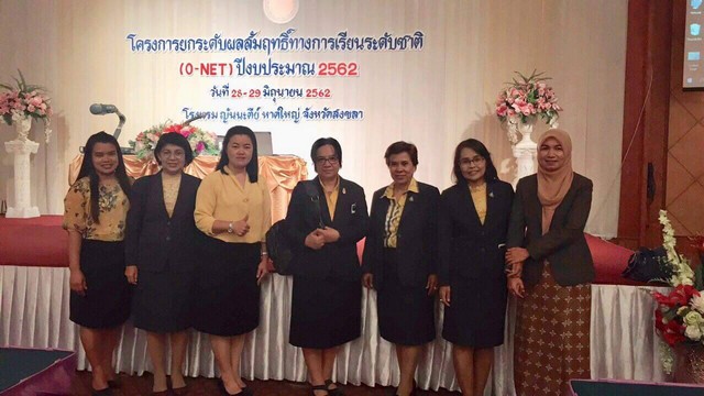 นางปิยะรัตน์ จิ๋วเจริญ รองผู้อำนวยการสำนักวิชาการฝ่ายประถมศึกษา และครูงานวัดและประเมินผลอบรมโครงการยกระดับผลสัมฤทธิ์ทางการเรียนระดับชาติ ( O-Net ) ปีงบประมาณ 2562 วันที่ 28-29 มิถุนายน 2562 ณ โรงแรมญันนะตีย์ หาดใหญ่ จังหวัดสงขลา