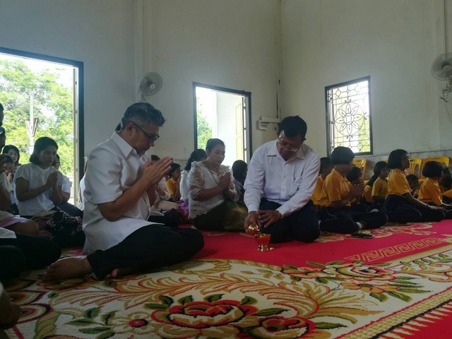ผู้บริหาร และครูโรงเรียนกลับเพชรศึกษาเข้าร่วมพิธีสมโภชเทียนพรรษา เนื่องในเทศกาลอาสาฬหบูชาและเข้าพรรษา โครงการงานสัปดาห์ส่งเสริมพระพุทธศาสนา วันที่ 12 กรกฎาคม 2562 เวลา 08.30 น. ณ หอประชุมโรงเรียนแจ้งวิทยา