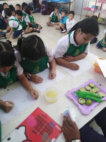 กิจกรรมเคลื่อนไหวและการทดลองหมึกล่องหน,กิจกรรมเกี่ยวกับทักษะการฟัง การสังเกตเปรียบเทียบสิ่งของ และกิจกรรมเกี่ยวกับการใช้ภาษาและศิลปะ วันที่ 18 กุมภาพันธ์ 2563 ณ ห้องเรียนชั้นฐมวัยปีที่ 3