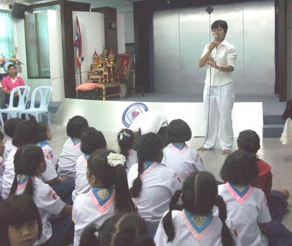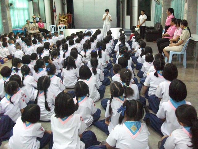 การฝึกนั่งสมาธิทำให้เกิดสติรู้จักใช้ความคิดให้เกิดปัญญาและความสุข นักเรียนโรงเรียนกลับเพชรศึกษาได้รับการฝึกจากอาจารย์เหมาภา ธนอานนท์ วันที่ 19 กรกฏาคม 2555 ณ ห้องประชุมประวิงอนุสรณ์โรงเรียนกลับเพชรศึกษา