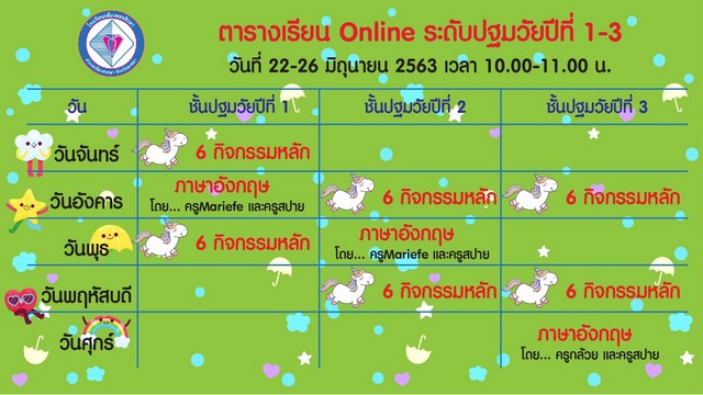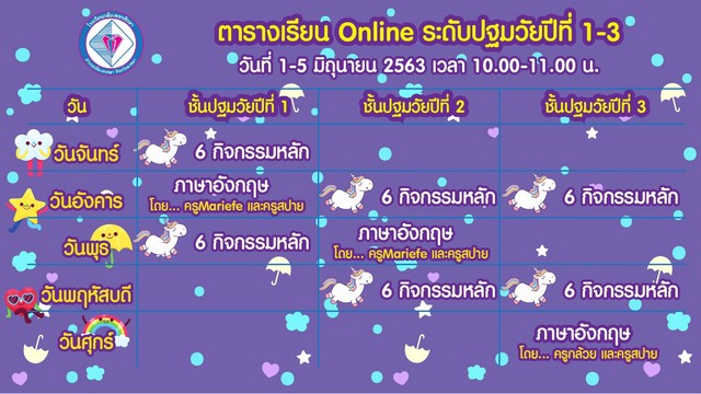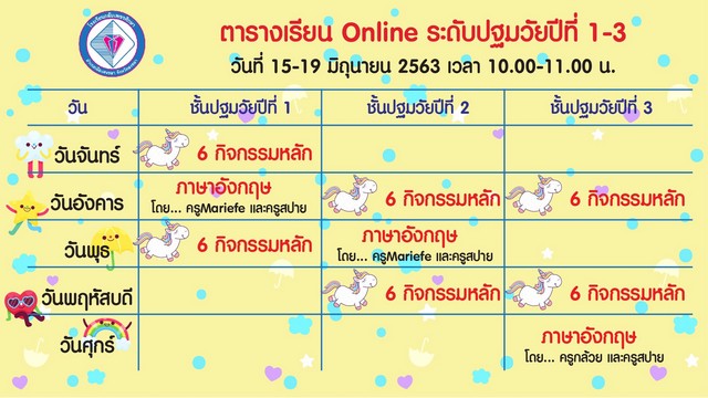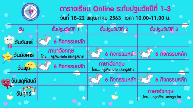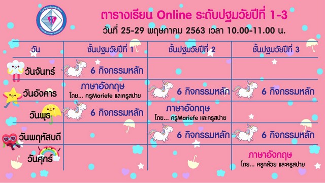 ตารางเรียนออนไลน์ ระดับปฐมวัย