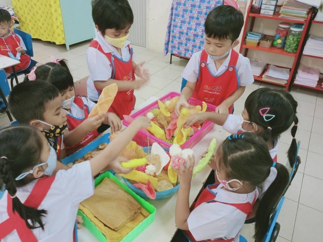 เด็กๆ ได้เรียนรู้การจัดหมรับ ซึ่งเป็นการสืบสานวัฒนธรรมในช่วงเทศกาลวันสารทเดือนสิบ วันที่ 15 กันยายน 2563