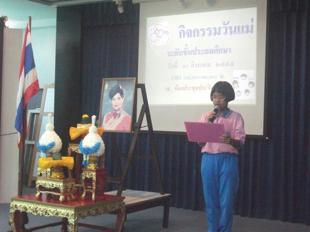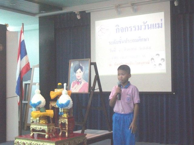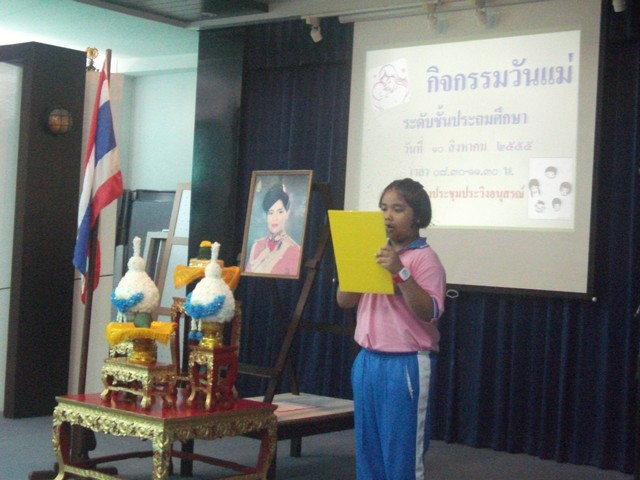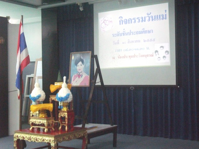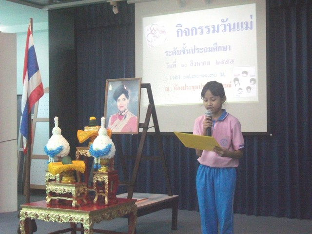 กิจกรรมวันแม่แห้่งชาติ วันที่ 10 สิงหาคม 2555 ของนักเรียนชั้นประถมศึกษาปีที่ 1-6 เวลา 08.30-11.30 น. ณ ห้องประชุมประวิงอนุสรณ์
