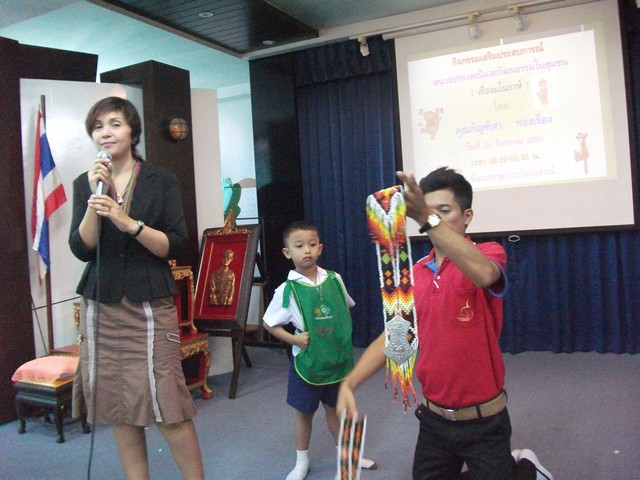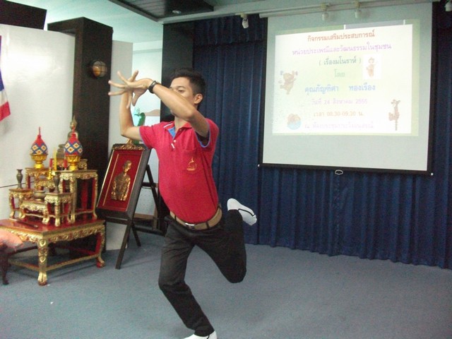 กิจกรรมเสริมประสบการณ์หน่วยประเพณีและวัฒนธรรมในชุมชน ( เรื่องมโนราห์ ) โดยคุณกัญฑิศา ทองเรือง วันที่ 24 สิงหาคม 2555 เวลา 08.30-09.30 น. ณ ห้องประชุมประวิงอนุสรณ์
