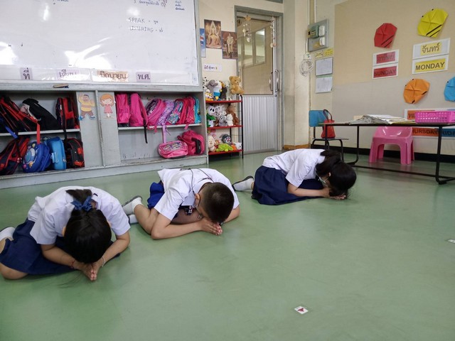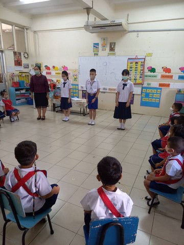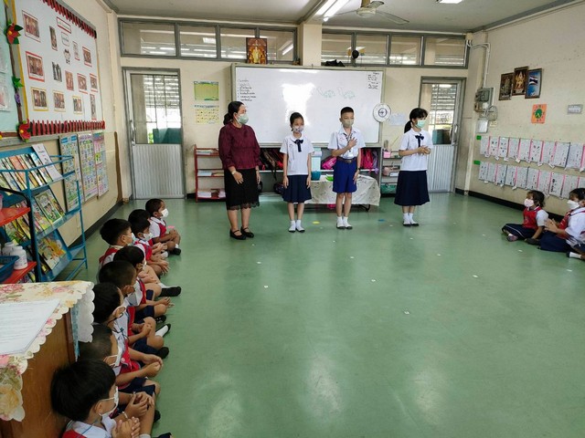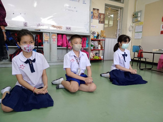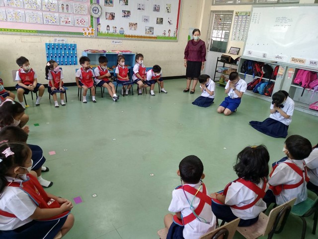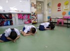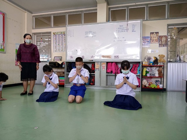 นักเรียนชั้นปฐมวัยปีที่ 2 เรียนเรื่องการกราบ