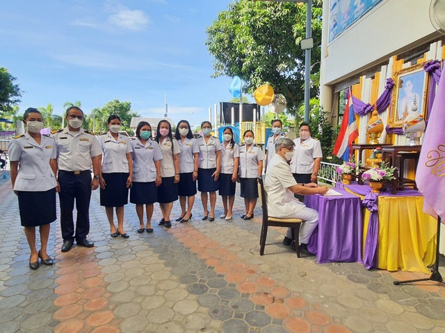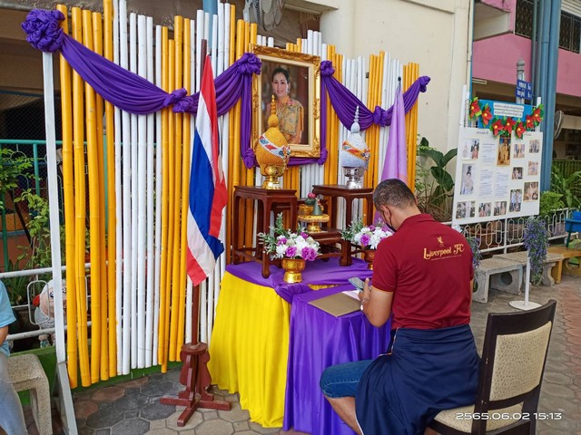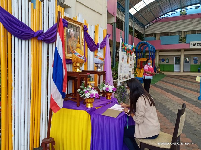 3 มิถุนายน คณะผู้บริหาร ครู เเละนักเรียน ร่วมพิธีถวายพระพรชัยมงคล เนื่องในโอกาสวันเฉลิมพระชนมพรรษา สมเด็จพระนางเจ้าสุทิดา พัชรสุธาพิมลลักษณ พระบรมราชินี และร่วมลงนามถวายพระพรวันพฤหัสบดีที่ 2 มิถุนายน พ.ศ. 2565 เวลา 08.30 - 11.00 น.ณ ห้องประชุมประวิงอนุสร
